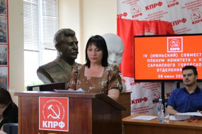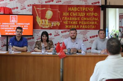 В Саранске прошел IV (июньский) совместный Пленум Комитета и Контрольно-ревизионной комиссии городского отделения КПРФ. В ходе встречи коммунисты обсудили актуальные проблемы и определили стратегию дальнейшей работы на ближайший период. В работе Пленума приняли участие секретари Мордовского рескома КПРФ, секретари первичных партийных отделений, депутаты-коммунисты и представители общественных организаций.
