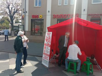 В субботу, 28 июня, мы выбрали место для палатки у областного Драмтеатра. И, хотя жителей в этот солнечный день было маловато, мы, в целом, неплохо поработали.