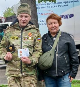 По поручению Тульского обкома КПРФ, член Комитета Пролетарского местного отделения, помощник депутата областной Думы Нина Евдокимова вручила памятную медаль ЦК КПРФ участнику СВО, ветерану боевых действий, штурмовику П.В. Павлову.