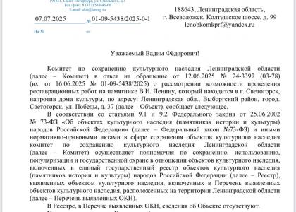 КПРФ настаивает, что защита памятников и их приведение в порядок — это неотъемлемая часть работы государства. Мы продолжим бороться за сохранение исторического наследия и будем добиваться, чтобы памятник В.И. Ленину в Светогорске был восстановлен и содержался в достойном виде.