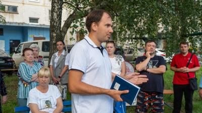 В Курске состоялась встреча жителей с депутатами от КПРФ — кандидатом на пост губернатора Курской области, депутатом облдумы Алексеем Бобовниковым и депутатом Курского городского Собрания Александром Понариным. Поводом для собрания стали наболевшие вопросы, связанные с деятельностью ТСЖ, благоустройством двора и отсутствием детской площадки.