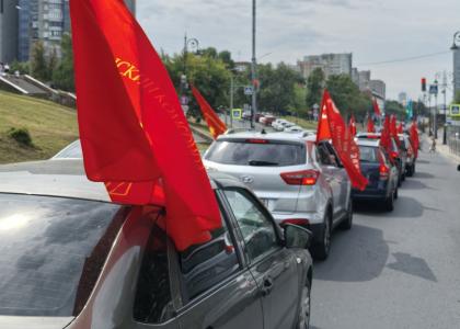 Колонна автомобилей, украшенных копиями Знамени Победы, флагами Советского Союза и символикой КПРФ, проследовала по центральным улицам города. В ходе остановок участники распространяли партийную прессу. Завершилось мероприятие возложением цветов.