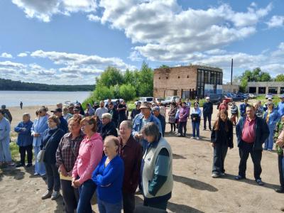 Конечно, прийти на митинг в такую глухомань смогли далеко не все интересующиеся. На данном участке берега очень неудобный спуск с косогора к реке, да и далековато от основной части поселка. Но люди все равно собрались. Причем немало жителей Черлака решили наблюдать за происходящим сверху, с косогора.