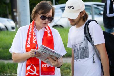 В пикетах у Кировской администрации и в 12-м микрорайоне принял участие депутат Госдумы РФ Андрей Алехин, эти красные палатки работали не только как точки заполнения бюллетеней Народного референдума КПРФ, но и как уличные депутатские приемные.