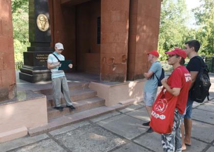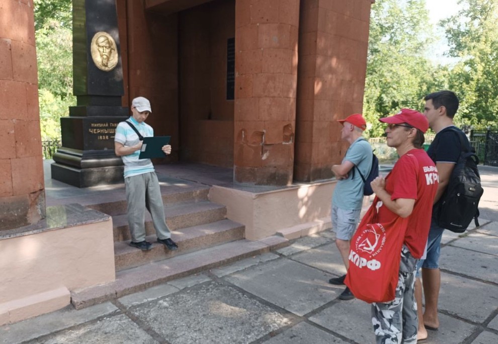 Саратовский коммунист Андрей Баженов провëл товарищей по захоронениям известных деятелей и рядовых участников революционного движения, связанных с Саратовским краем, рассказывая о биографиях, достижениях, интересных событиях, начиная с участников восстания декабристов в 1825 году и заканчивая деятелями Советского периода.
