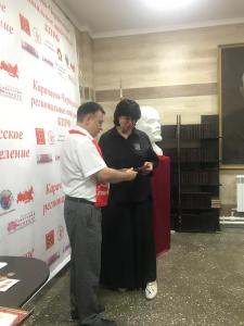 Перед собравшимися выступил Кемал Бытдаев. В ходе его выступления Казбек Тайсаев торжественно вручил воину СВО с позывным "Шах" партийный билет члена КПРФ и ключи от автомобиля. Ему же вручена медаль "80 лет Великой Победы". Вручены партийные билеты комсомолке из Черкесска Регине Маховой и Ниязби Аджиеву из Прикубанского района. Награждены медалями ЦК КПРФ "80 лет Великой Победы" Асхат Айсандыров и уже три года бессменно воюющий на СВО, коммунист из Черкесска Руслан Харченко.