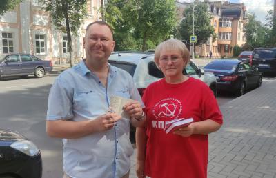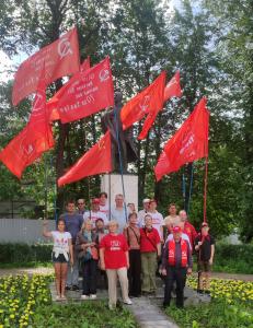 Старт был дан от железнодорожного вокзала. Колонну активистов и сторонников партии, комсомольцев возглавили первый секретарь Новгородского обкома партии Ольга Ефимова и первый секретарь городского Комитета КПРФ Андрей Михеев.