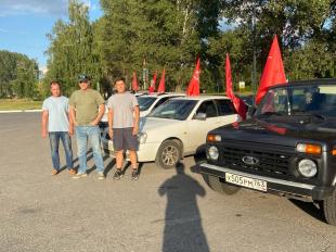 Колонна автомобилей с копиями Знамени Победы, флагами Советского Союза и символикой КПРФ проследовала по центральным улицам города. В ходе остановок участники распространяли партийную прессу.