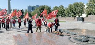 Останавливаясь у братских могил воинов Красной Армии, коммунисты почтили память павших и возложили красные гвоздики. Цветы были возложены к Вечному огню на площади Победы.