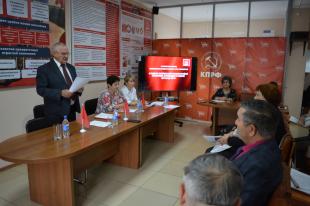 По основному вопросу с докладом выступил первый секретарь Забайкальского краевого комитета КПРФ Юрий Гайдук. Он отметил, с какими показателями краевая партийная организация подошла к Съезду и как она думает выполнять решения партийного Съезда.