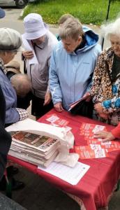 За прошедшую неделю активисты Московского городского отделения КПРФ, местных партийных отделений КПРФ г. Москвы продолжали проводить работу по сбору подписей в поддержку инициатив Компартии, вынесенных на Народный референдум. Коммунисты ежедневно стоят у входов в станции метро, в местах массового скопления людей, в парках, привлекая москвичей и гостей столицы к участию во всенародном голосовании. Люди активно поддерживают предложения КПРФ о проведении национализации ЖКХ, о введении государственного регулирования цен на товары первой необходимости, об отмене пенсионной «реформы», о государственной социальной поддержки поколения Детей войны, о возобновлении обязательного проведения публичных слушаний по вопросам градостроительной политики.