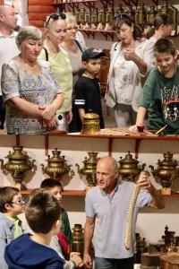 Ребят и их родителей встретили очень тепло и гостеприимно, состоялась интересная экскурсия: детям показали редкую коллекцию самоваров, познакомили с их историей, рассказали, как менялся внешний вид и устройство этих, казалось бы, простых, но таких значимых предметов русского быта. Каждый экспонат — это часть истории нашей страны, отражение целой эпохи.