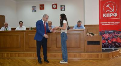 По сложившейся многолетней традиции перед открытием работы Пленума первый секретарь Дагестанского рескома КПРФ Самир Абдулхаликов вручил партийные билеты, вновь вступившим в ряды КПРФ.