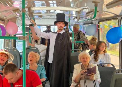 В День города по улицам Калуги проехал литературный троллейбус. Маршрут №12, украшенный фотографиями памятных мест города, флажками и шариками под мелодию Серафима Туликова к песне «Здравствуй, милая Калуга!», встречал пассажиров.