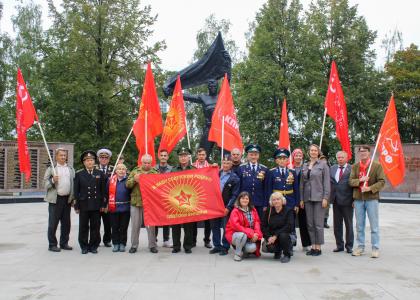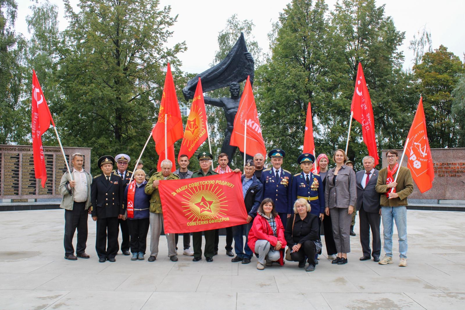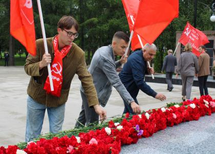 В завершение поздравлений собравшиеся в этот день коммунисты, офицеры, комсомольцы, представители женского движения «Надежда России» стройными рядами возложили цветы к Вечному огню у Монумента боевой и трудовой славы Ижевска.