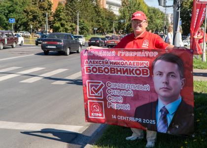 Поднятые над головами 4-метровые алые знамена КПРФ и билборды с изображением кандидата в губернаторы от КПРФ А.Н. Бобовникова виднелись издалека и явно находили одобрение курян. Все с удовольствием брали агитационный материалы, газеты, листовки. Теперь ждем положительный результат на выборах.