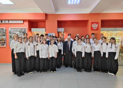 Рабочий день начался с посещения Центра героико-патриотического воспитания «Пост № 1», где Казбек Тайсаев встретился с новосибирскими школьниками, несущими Почётную Вахту памяти у Вечного огня. Эта традиция хранится уже многие годы: перед тем как выйти к мемориалу, ребята проходят подготовку, осваивают дисциплину и изучают историю подвигов воинов-сибиряков.