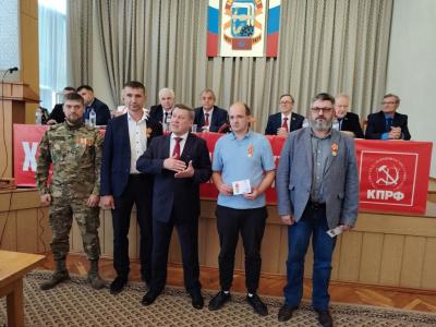 Перед обсуждением основной повестки лидер новосибирских коммунистов вручил партийные награды участникам СВО и ветеранам боевых действий, ставших кандидатами от КПРФ, — Станиславу Лысенко, Илье Родину, Александру Недосекину и Александру Склифосу.