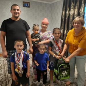 Глава семьи трудится не покладая рук вахтовым методом, вроде хорошо зарабатывает. Тем не менее, помощь не бывает лишней. Этой семье уже три года подряд коммунисты Советского райкома помогают собрать детей в школу. Ведь только самый младший, Дима, еще ходит в детский сад, а старшие дети уже учатся, причем оценки получают хорошие.