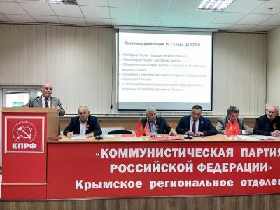 Состоялся Пленум комитета Крымского рескома КПРФ, на котором основное внимание было уделено итогам XIX Съезда КПРФ и задачам, стоящим перед крымскими коммунистами. С докладом по этому вопросу выступил первый секретарь Комитета КРО КПРФ Сергей Богатыренко.