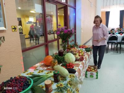 Праздничное настроение создавали красиво убранные столы, на них и тыквы, и капуста, и лук, и свекла, и морковь, а также перец, огурцы, кабачки, помидоры. В вазах цветы, виноград, яблоки, сливы. Это говорит о том, что год был урожайный.