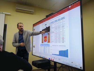 Александр Рогожкин, заместитель руководителя Штаба по информационно-аналитической работе, доложил о медийной работе партии и партийных активистов, в том числе в рамках продвижения смыслов и идей Народного референдума. Слушателям были представлены основные тезисы из аналитического доклада Центра исследований политической культуры России, посвященного этому направлению нашей деятельности.