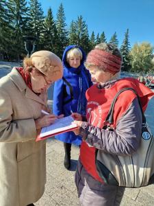 Сразу после окончания собрания коммунисты и члены Союза советских офицеров провели опросы жителей Челябинска в рамках Народного референдума КПРФ.