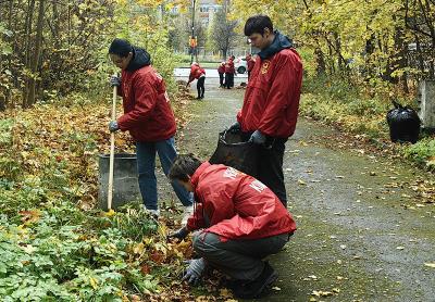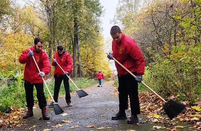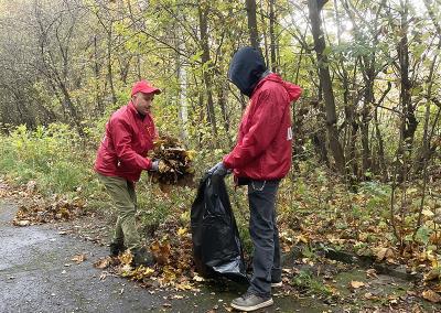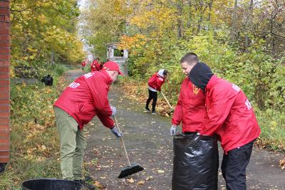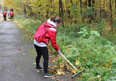 В ходе работы, несмотря на пасмурную погоду и моросящий дождь, участники убрали мусор и пустые бутылки, оставленные посетителями, сгребли опавшую листву и собрали сухие ветки.