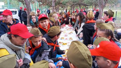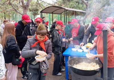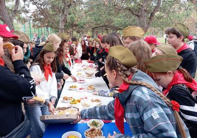 Ну а после, всех участников партийно-комсомольско-пионерского праздника ждал вкусный обед, приготовленный на полевой кухне.