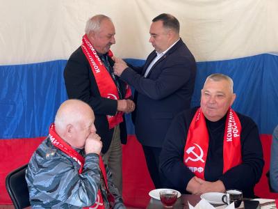 После делегацию ожидали участники торжественного собрания почетных жителей села Пятихатки Красногвардейского района. Руководитель фракции КПРФ в Госсовете Крыма Сергей Богатыренко наградил памятными медалями ЦК КПРФ «80 лет освобождения Крыма и г. Севастополя» почетных ветеранов труда по поручению Геннадия Андреевича Зюганова. В ходе торжественной церемонии он выразил благодарность ветеранам за их большой вклад и самоотверженный труд, который они вложили в развитие региона.