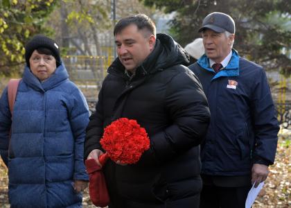На церемонии возложения цветов к шести орденам, украшающим монумент, первый секретарь Новосибирского обкома КПРФ Анатолий Локоть поделился историей появления традиции: