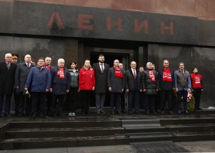В 10:30 коммунисты и их сторонники собрались на Манежной площади у памятника Маршалу Победы Г.К. Жукову. Затем колонна с Красными знамёнами направилась в сторону Красной площади. Участники мероприятия возложили цветы и венки к Мавзолею В.И. Ленина, к местам захоронения Советских государственных и партийных руководителей у Кремлёвской стены.