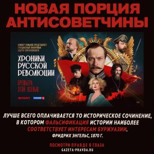 Денис Андреевич замечает - специальные информационные операции вроде «Мумии» и «Хроник русской революции» есть не первые и, по всей видимости, далеко не последние звенья в длительной классовой войне на идейном поприще — войне за получение контроля над сознанием большинства, которое одно только и способно своими действиями либо поддержать, либо опрокинуть систему капитализма. Для первого выбора достаточно всего лишь молчать, ничего не делать и безропотно покориться судьбе. Это лёгкий путь с очень тяжёлыми последствиями в виде впахивания на чужого дядю, кредитной удавки, военных потрясений, вымирания народа, электронного концлагеря и неизбежного угасания нашей державы. Полный текст статьи доступен на сайте газеты «Правда».