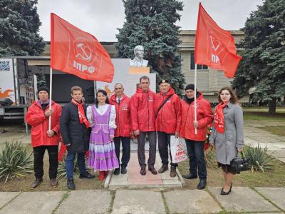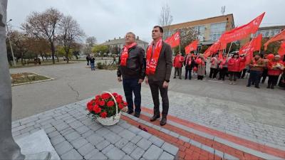 В районах Херсонской области прошли торжественные мероприятия, посвящённые 108-й годовщине Великого Октября. Коммунисты возложили цветы к памятнику Владимиру Ильичу Ленину, провели встречи с молодежью и открыли восстановленный монумент в Каланчакском муниципальном округе.