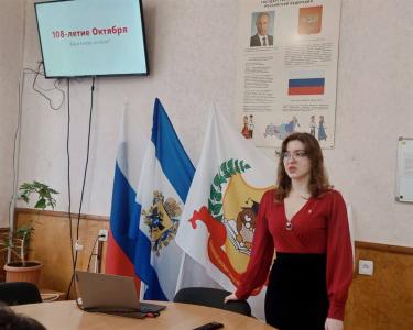 В Геническом колледже сферы обслуживания руководитель регионального комсомола Амина Шабанова провела тематическую встречу со студентами, рассказала о значении Великого Октября и о Владимире Ленине. В Новотроицком округе депутат КПРФ Ольга Майстренко организовала урок-беседу «Этих дней не смолкнет слава» для школьников. Особое место в череде мероприятий заняло открытие восстановленного памятника Ленину в селе Преображенка. Монумент, разрушенный в 2014 году, был восстановлен по инициативе депутата КПРФ Сергея Мельника при поддержке коммунистов и жителей. Постамент изготовил местный житель Николай Шкуро.