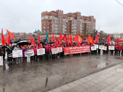 8 ноября, в честь 108-й годовщины Великой Октябрьской социалистической революции, в столице Республики Марий Эл – городе Йошкар-Оле коммунисты республики провели торжественный митинг.