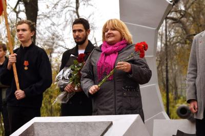 Перед возложением цветов, первый секретарь Комсомола города Мариуполя, студент университета Александр Маханьков, поздравил собравшихся с праздником, подчеркнув важность сохранения памяти об истории революции, оказавшей огромное влияние на весь мир и подарившей людям право на мир и свободу. «…Оголодавший и униженный рабочий люд восстал против буржуазного режима и его пережитков. Эти люди отдали свои жизни за счастье трудящихся всего мира…», - заявил лидер мариупольских комсомольцев.