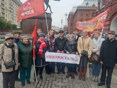 Химкинские коммунисты в составе Московского областного отделения КПРФ приняли активное участие в патриотической акции возле памятника К.Марксу и возложению цветов к Мавзолею В.И. Ленина.