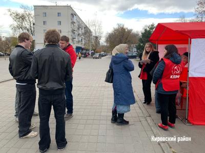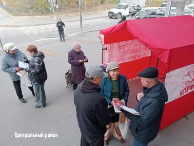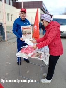 Коммунисты раздавали праздничный спецвыпуск газеты «Сталинградская трибуна» с поздравлениями лидера КПРФ Геннадия Зюганова и депутата ГД РФ ФС Николая Арефьева со 108-й годовщиной Великой Октябрьской социалистической революции. Сегодня, когда интернет подводит, и не всегда есть возможность выйти в сеть, партийная литература уже стала для многих источником информации. В каждом номере подробно и всесторонне раскрывается содержание вопросов, вынесенных на Народный референдум КПРФ, освещаются политические события регионального и федерального уровней. Таким образом, Красные палатки и "Сталинградская трибуна" работают в тандеме, создавая единое информационное пространство для гражданского диалога.