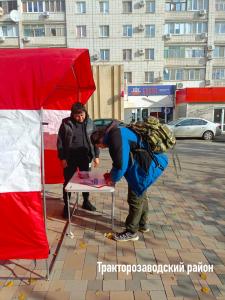 К Сталинградской Красной палатке люди приходят, чтобы узнать больше, задать вопросы, поделиться своими мыслями и предложениями. Активисты разъясняют важность участия в Народном референдуме. Они подчеркивают, что именно от активной позиции каждого из нас зависит, каким будет наше завтра, какие решения будут приняты и как они повлияют на нашу повседневную жизнь.
