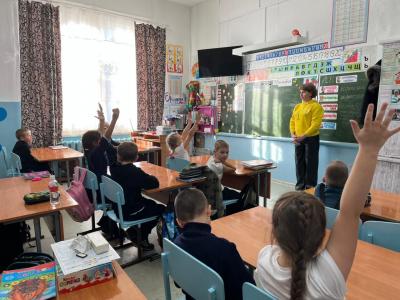 Партийцы рассказали школьникам об истории и ценностях пионерского движения, реализуемых проектах, а также о предстоящей лагерной смене.