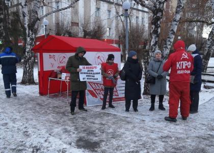 Годовщину освобождения Омска от колчаковщины омские коммунисты отметили не только традиционным возложением цветов к Вечному огню. Сегодняшний пикет в поддержку Народного референдума КПРФ под руководством второго секретаря Омского обкома КПРФ Ивана Федина около Кировской администрации был призван также напомнить жителям города об очередной годовщине освобождения Омска от колчаковцев. А вечером в сквер Борцов Революции пришли с цветами активисты ЛКСМ, занятые в рабочее время, под руководством заведующего отделом пропаганды и агитации Омского обкома КПРФ Андрея Харчука. Они возложили цветы к Вечному огню к установленным в сквере бюстам революционеров.