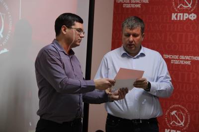 Первый секретарь Томского обкома КПРФ А.Г. Петров вручил почётные грамоты и подарки товарищам по партии, отметившим не так давно свои дни рождения. Пожелал им успехов в работе и крепкого сибирского здоровья.