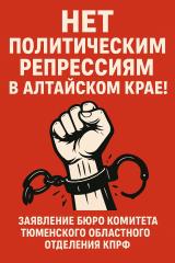 Мы, тюменские коммунисты, находясь за тысячи километров от Алтайского края, выражаем свою солидарность. Мы видим в этом деле опасный прецедент для всех, кто осмелится противостоять произволу.
