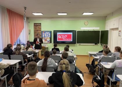 28 ноября активисты Карельского рескома Комсомола провели занятие для 5-го класса Сортавальской средней школы № 7 в посёлке Хилюля. Говорили с учащимися о Великой Отечественной войне и о вкладе юных героев-антифашистов в общую победу. Легендарные биографии советских пионеров и комсомольцев, их подвиги должны стать примером для нынешнего поколения, жизненным ориентиром на долгие годы.