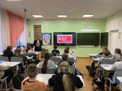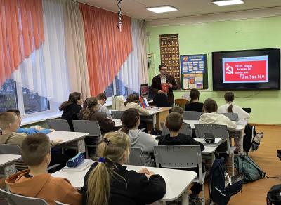28 ноября активисты Карельского рескома Комсомола провели занятие для 5-го класса Сортавальской средней школы № 7 в посёлке Хилюля. Говорили с учащимися о Великой Отечественной войне и о вкладе юных героев-антифашистов в общую победу. Легендарные биографии советских пионеров и комсомольцев, их подвиги должны стать примером для нынешнего поколения, жизненным ориентиром на долгие годы.