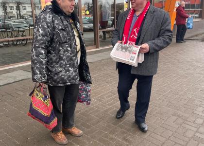 В минувшее воскресенье состоялся очередной агитрейд красных в городе. В непосредственной близости от ТЦ «Галерея» коммунисты Костромского городского отделения распространили свежий номер самой передовой политической газеты Костромской области и провели опрос граждан, которые охотно откликались и заинтересовано отвечали на вопросы народного референдума КПРФ.