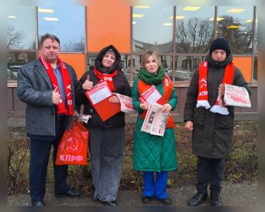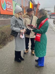 В минувшее воскресенье состоялся очередной агитрейд красных в городе. В непосредственной близости от ТЦ «Галерея» коммунисты Костромского городского отделения распространили свежий номер самой передовой политической газеты Костромской области и провели опрос граждан, которые охотно откликались и заинтересовано отвечали на вопросы народного референдума КПРФ.