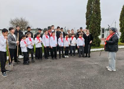 В субботнике приняли участие второй секретарь Комитета Урванского местного отделения КПРФ Казбек Гетоков, пионеры и комсомольцы школы и учителя.