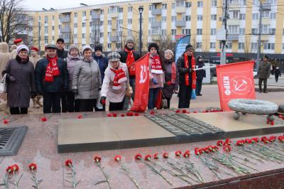 После торжественной части калужские коммунисты возложили живые цветы к Вечному Огню и памятнику Георгию Константиновичу Жукову.